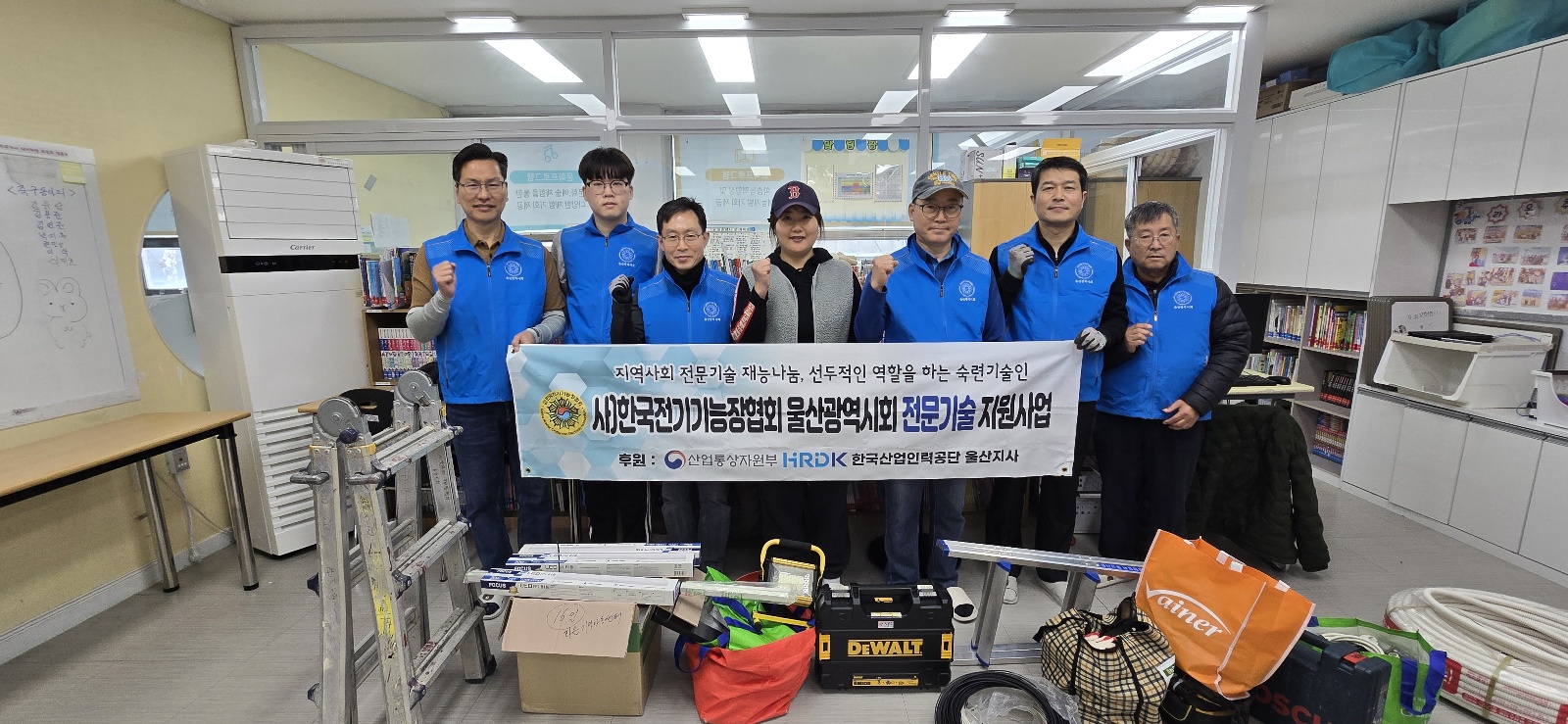 2025.3.16. 울산 남구 삼호동 라온지역아동센터에서 전기수리 LED전등교체 자원봉사를 실시하였습니다.http://www.xn--3e0bv17bgwao64b.com/bbs/board.php?bo_table=0111&wr_id=198 사)한국전기기능장협회 울산광역시회 전기수리봉사 실시사진설명 :왼쪽부터 장재영국장, 박준영, 박진풍기능장, 라온센터장, 정봉주회장, 장재영국장, 손덕화위원장(한국요양신문⎓이형천 전문기자) 지난 16일(일) 오전 울산시 남구 라온지역아동센터www.xn--3e0bv17bgwao64b.comhttp://www.xn--3e0bv17bgwao64b.com/bbs/board.php?bo_table=0111&wr_id=199 울산숙련기술인협회, 울산미래사회봉사단 지역아동센터 전기수리봉사..