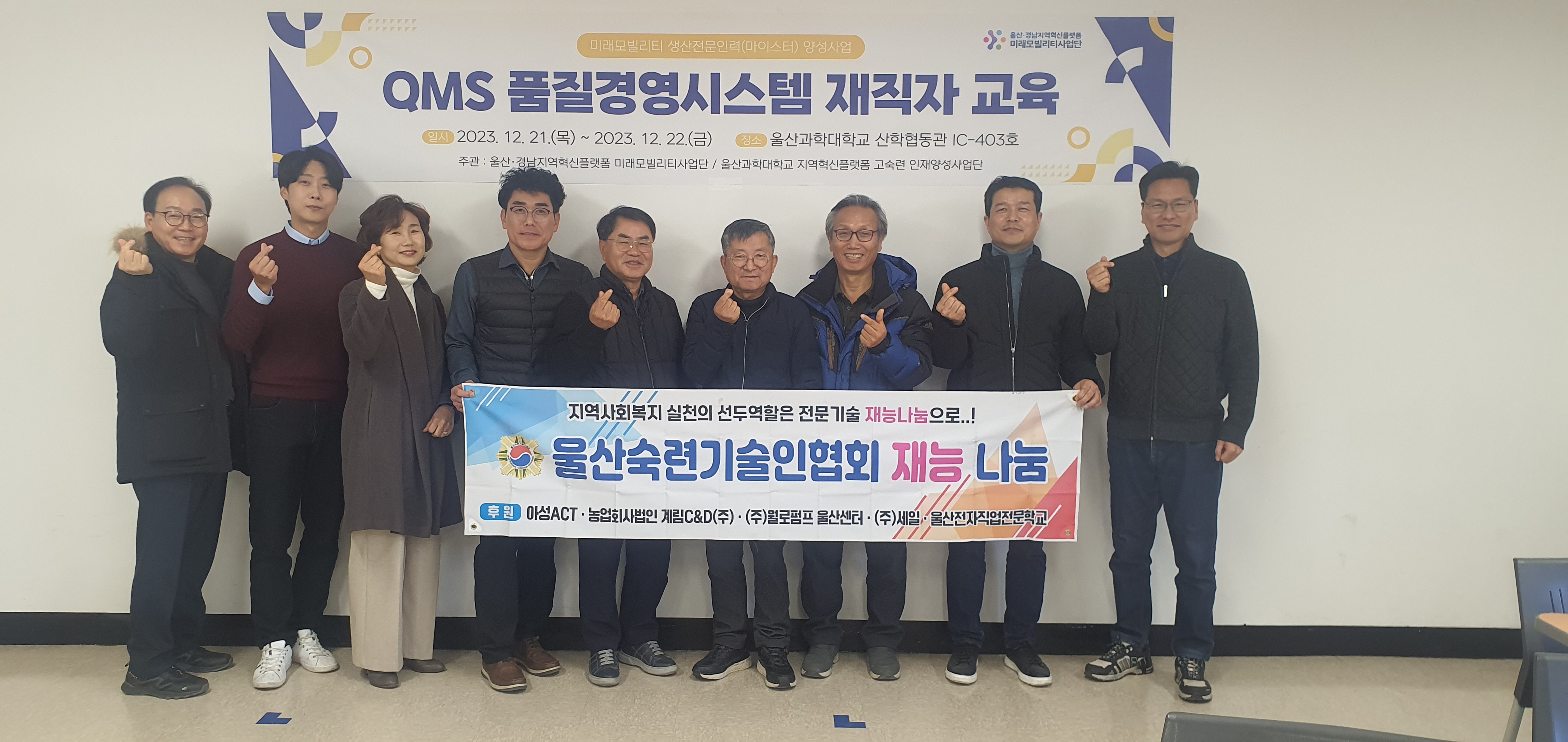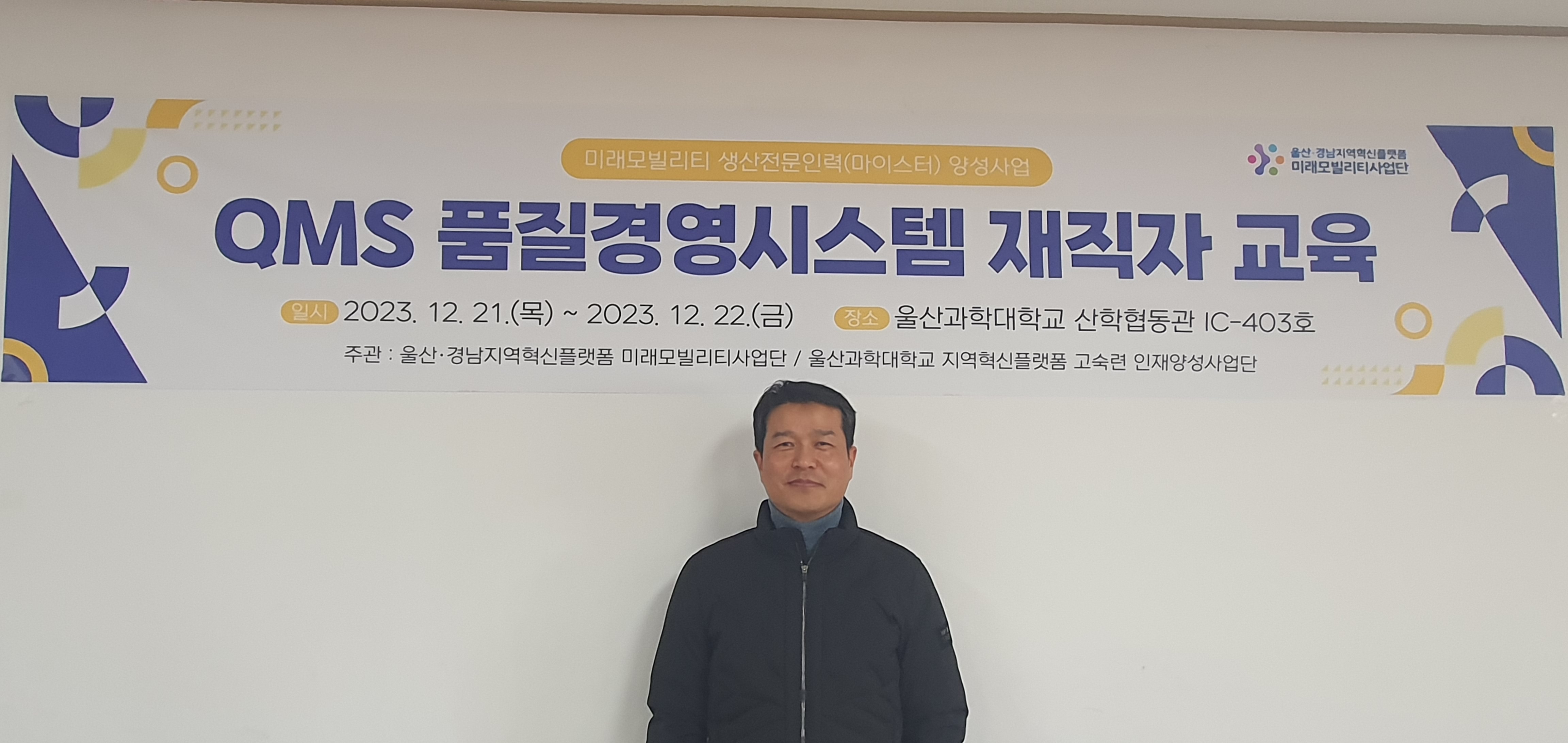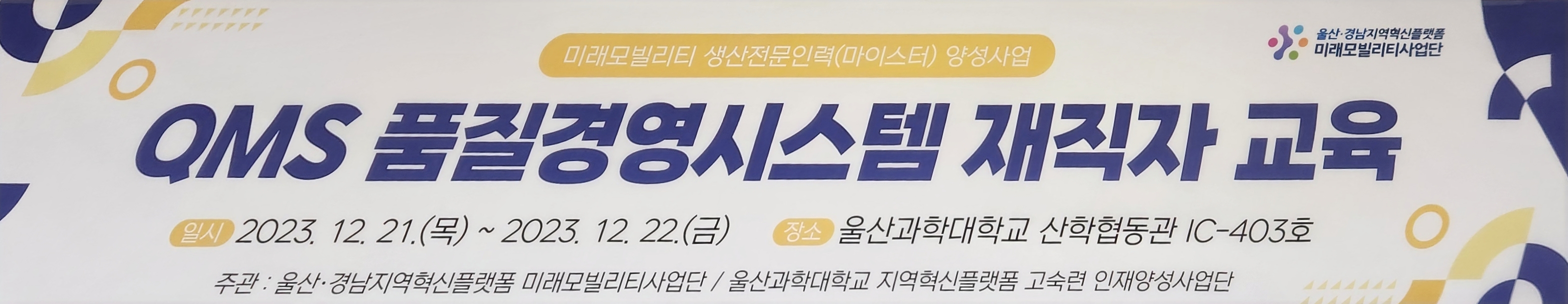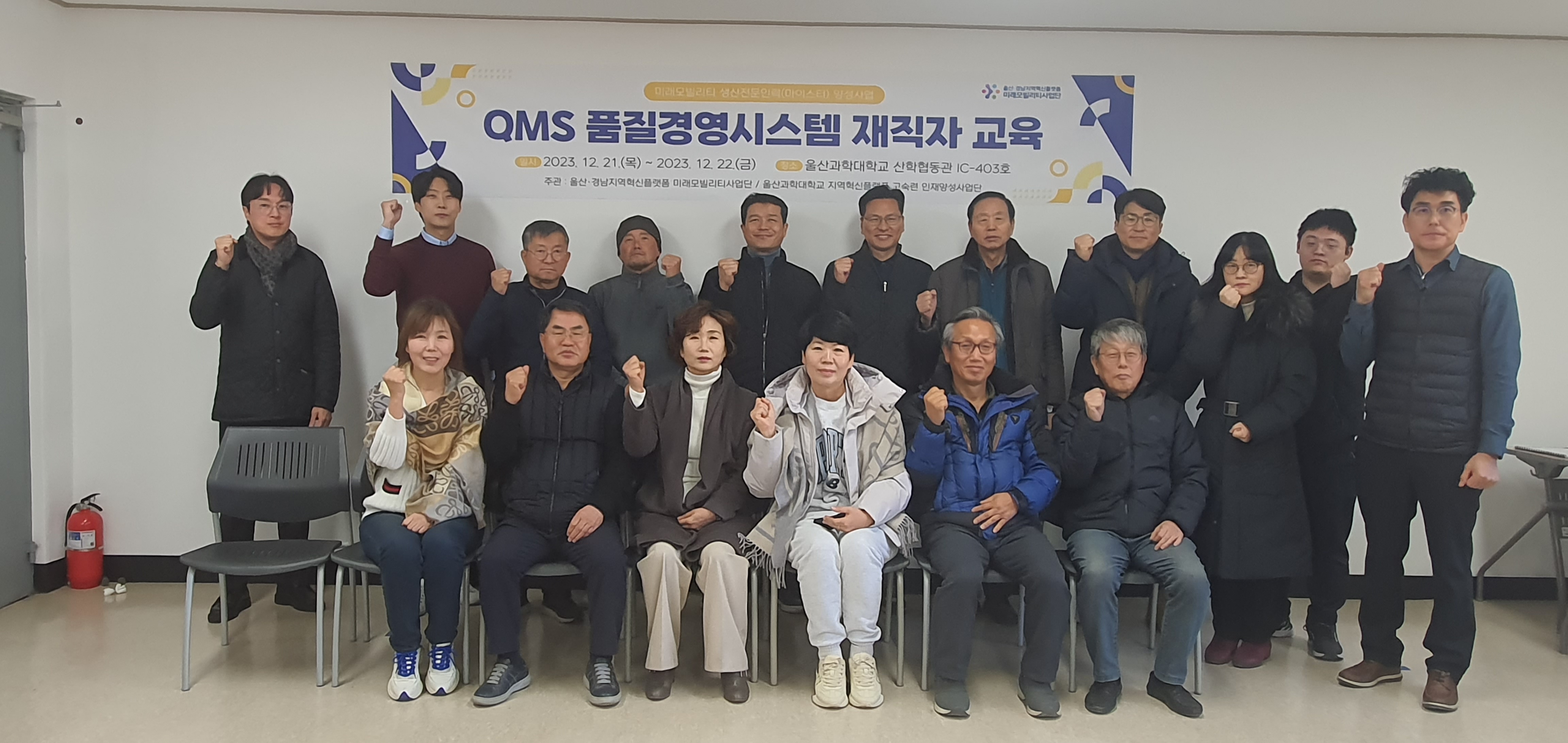 -울산.경남지역혁신플랫폼 미래모빌리티사업단-품질경영시스템의 국제간 교역 촉진을 위한 규정-품질 관리, 프로세스 향상, 고객 중심 접근, 경쟁력을 확보사진설명: 앞줄 왼쪽 첫 번째 비즈플